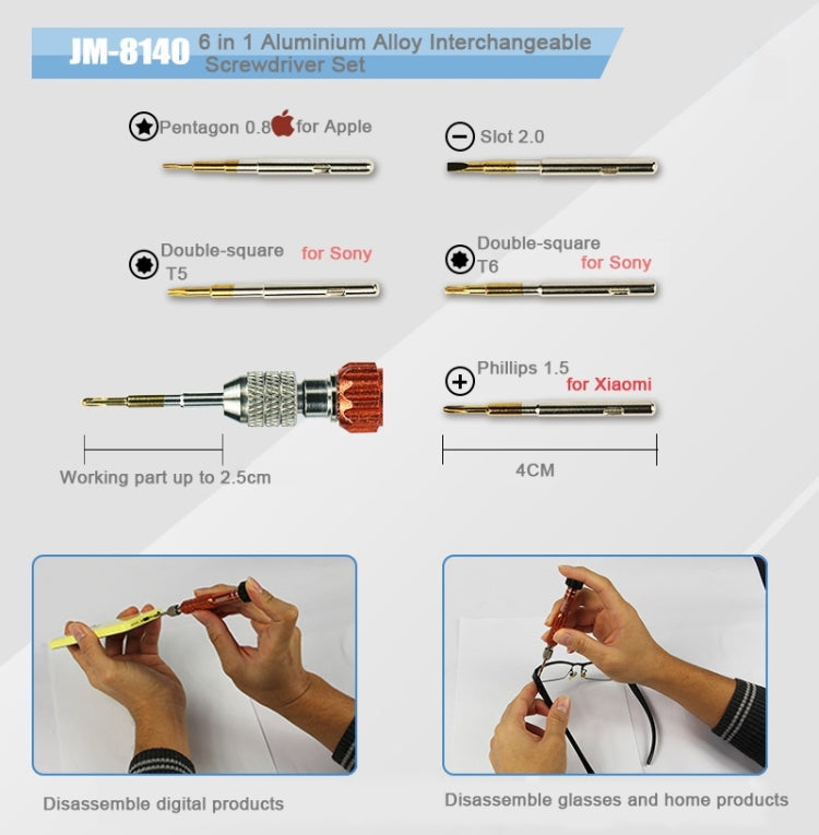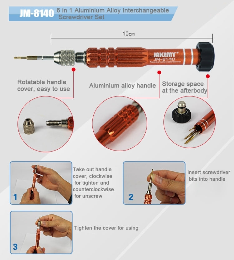 JAKEMY JM-8140 6 in 1 Precise Aluminium Alloy Screwdriver Tools Kit