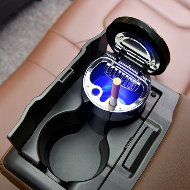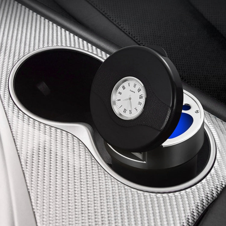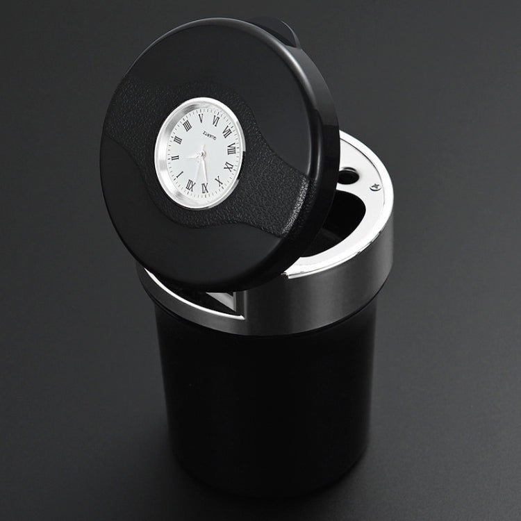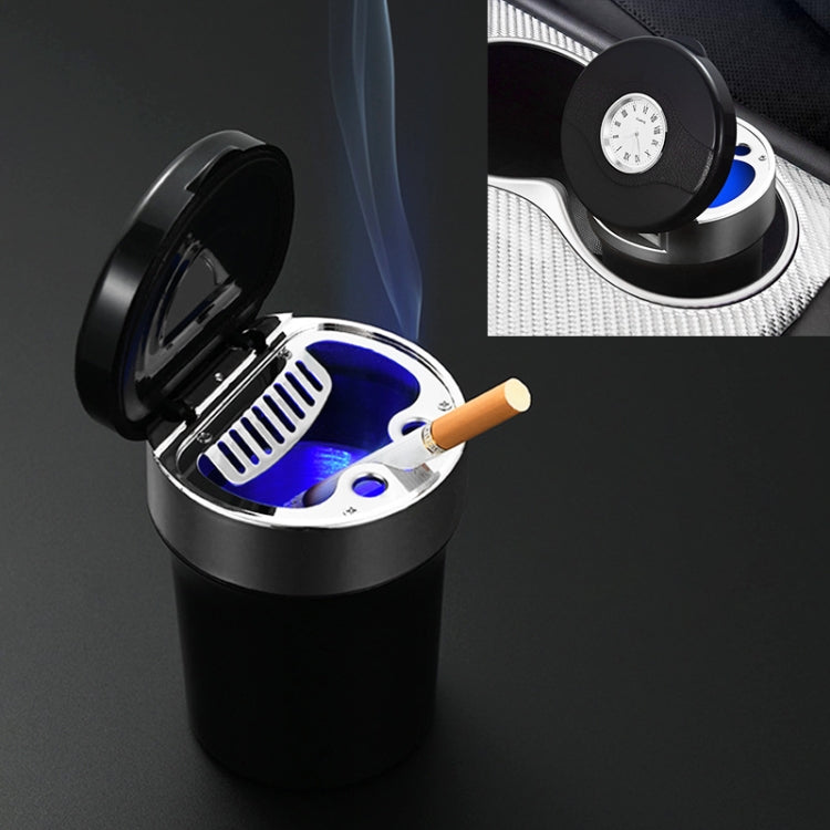 Multi-function Portable Creative LED Car Cigarette Ash Tray Ashtray with Clock (Silver)
