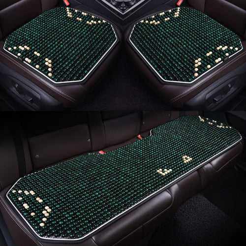 3 in 1 Summer Car Cushion Wooden Lumbar Cushion Backrest Lumbar Support Seat Mat Set (Dark Green)