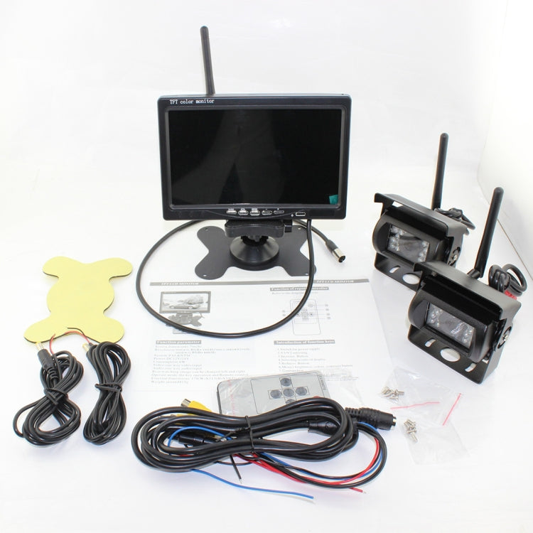 PZ-607-W-2 2 Monitor Security Cameras 2.4GHz Wireless Vehicle, Infrared Night Vision Rear View Camera + 7 inch Monitor for Campers RV Truck Trailer
