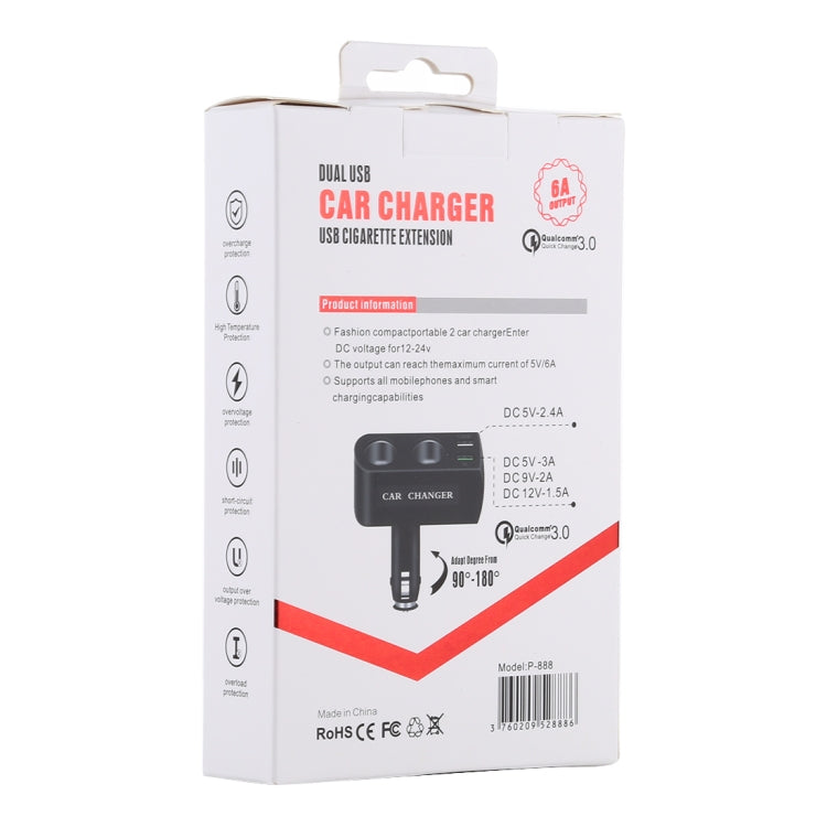 QC 3.0 Dual USB Ports 6A with 2 Socket Cigarette Lighter Splitter Car Charger