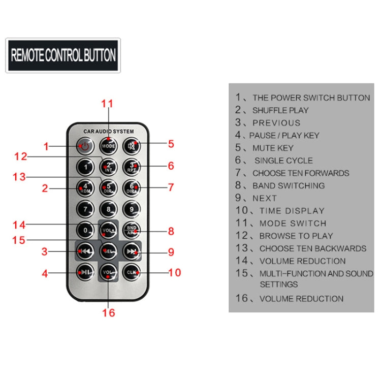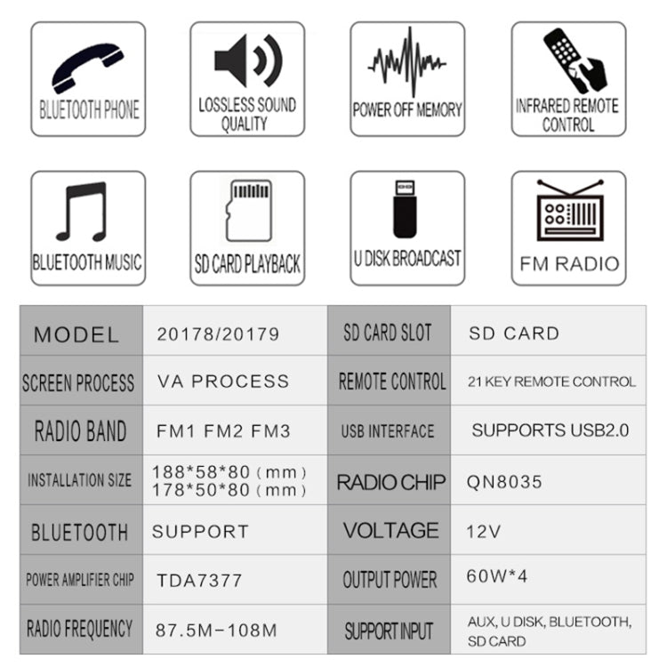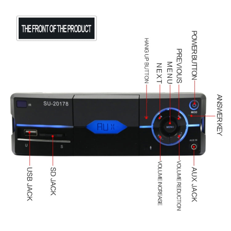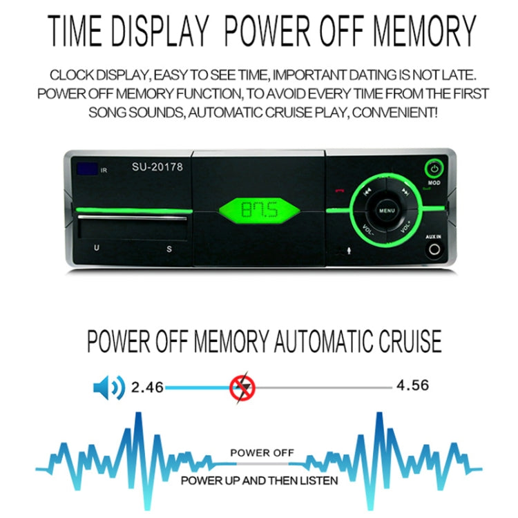 SU-20178 Universal Car Radio Receiver MP3 Player, Support FM & Bluetooth with Remote Control(Black)