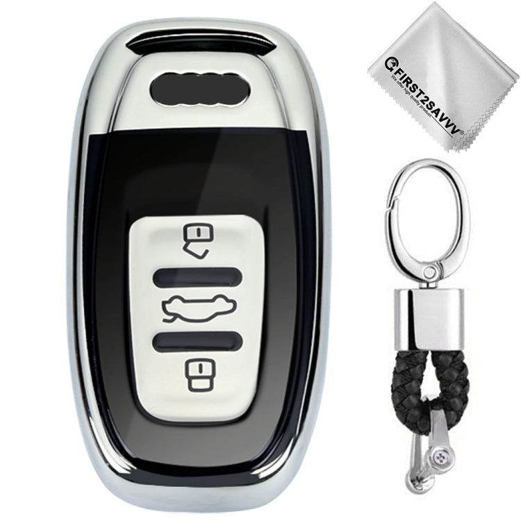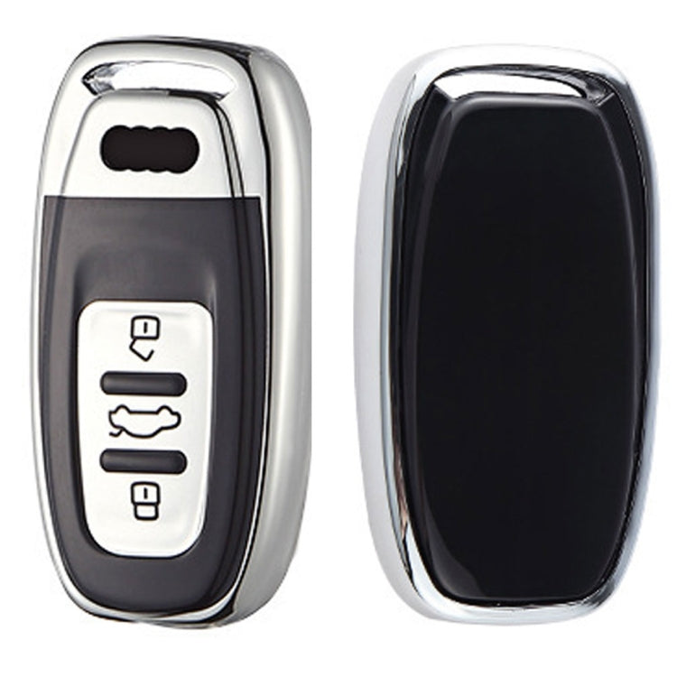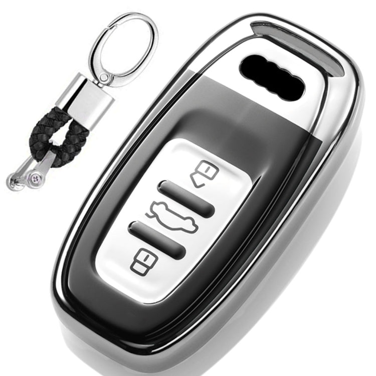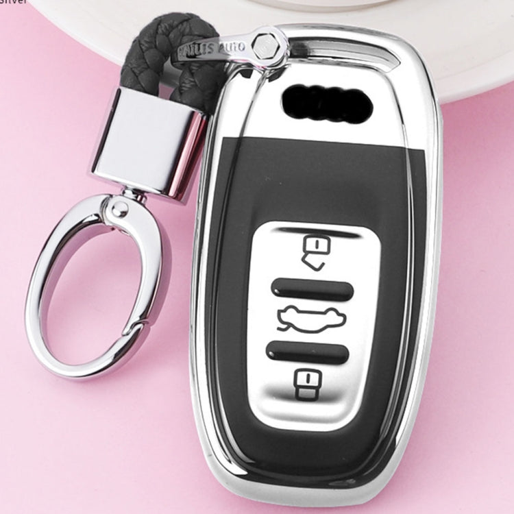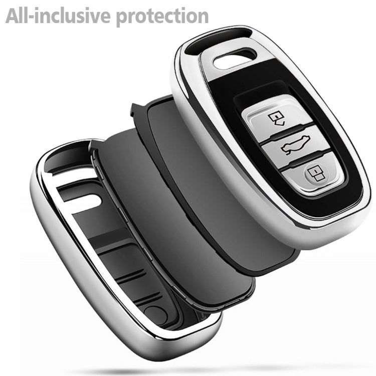 TPU One-piece Electroplating Full Coverage Car Key Case with Key Ring for Audi A4L / A6L / Q5 (Old) (Silver)