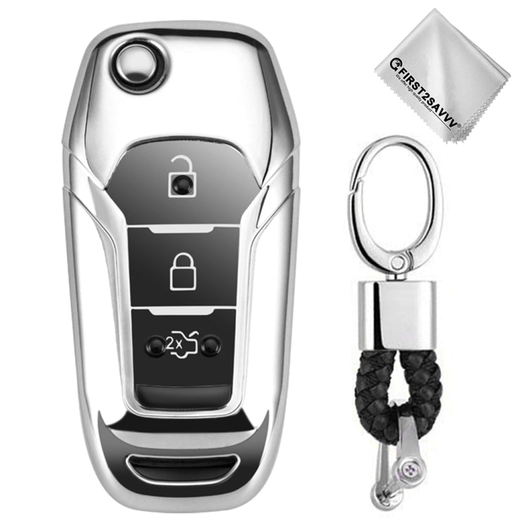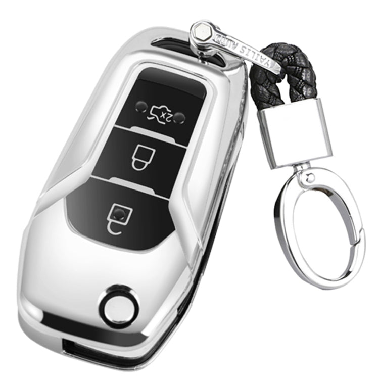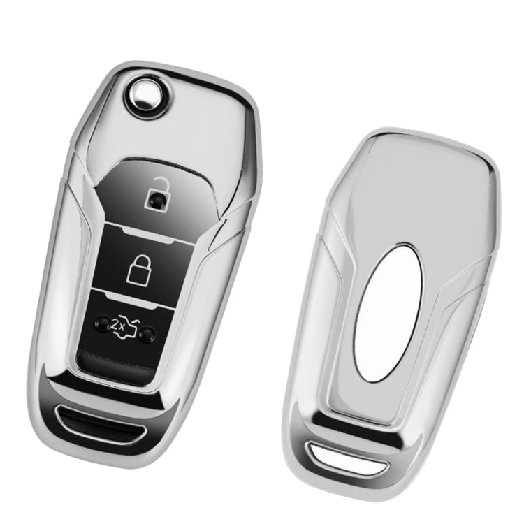 TPU One-piece Electroplating Opening Full Coverage Car Key Case with Key Ring for Ford Edge / ESCORT / KUGA / Mondeo / EcoSport / FOCUS (Silver)