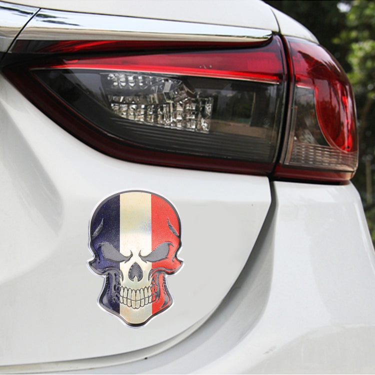 Universal Car France Flag Skull Shape Metal Decorative Sticker