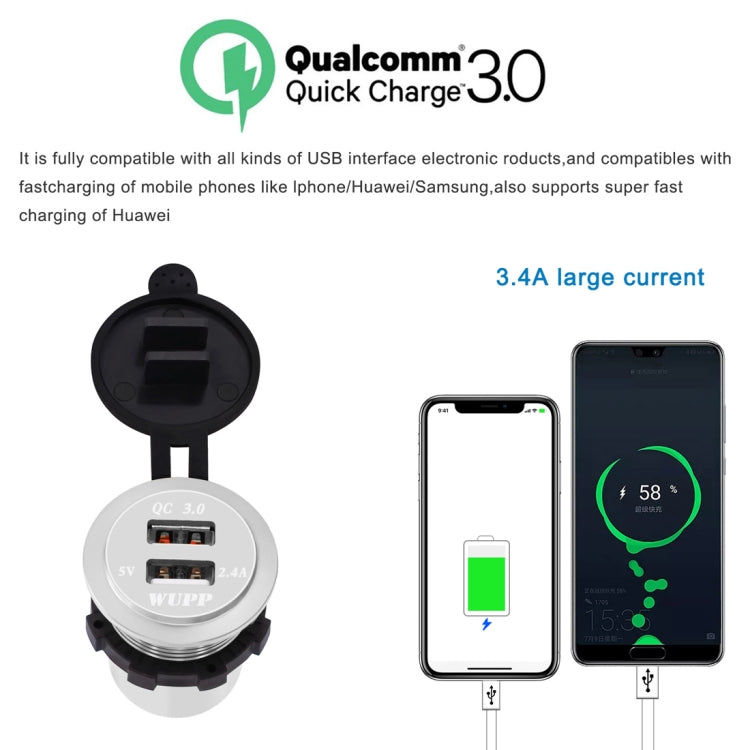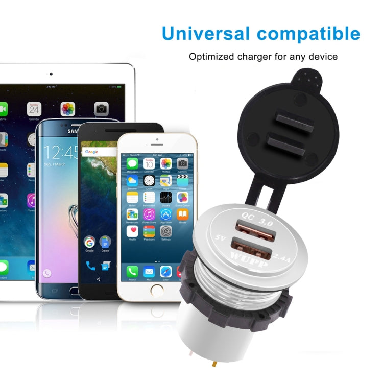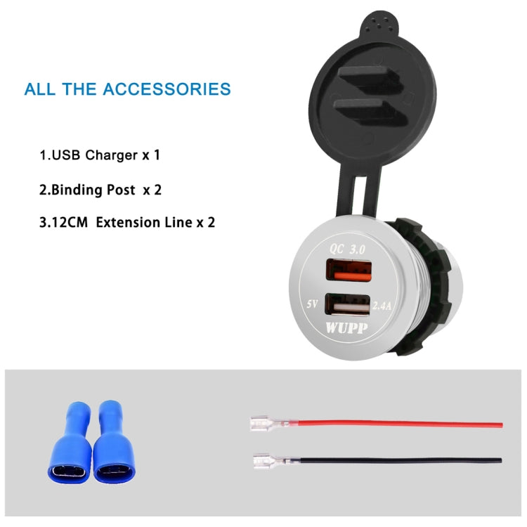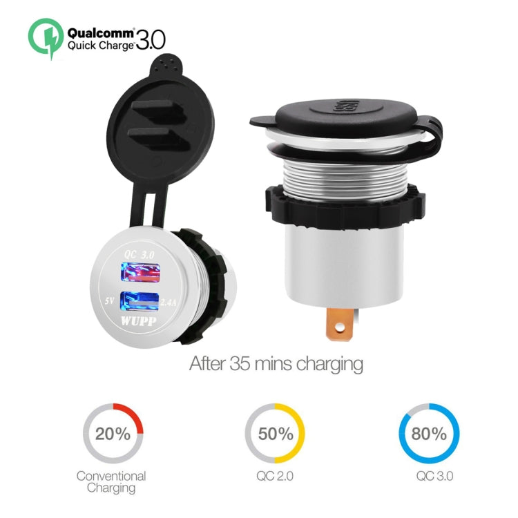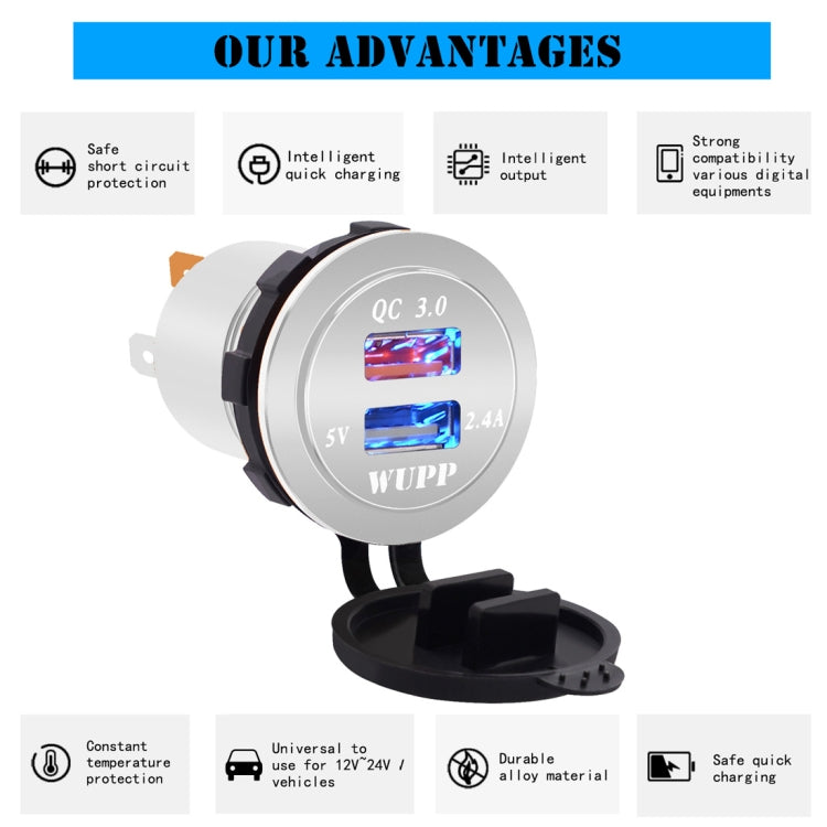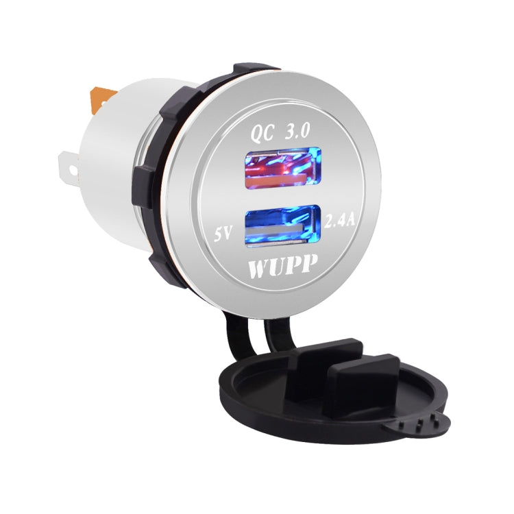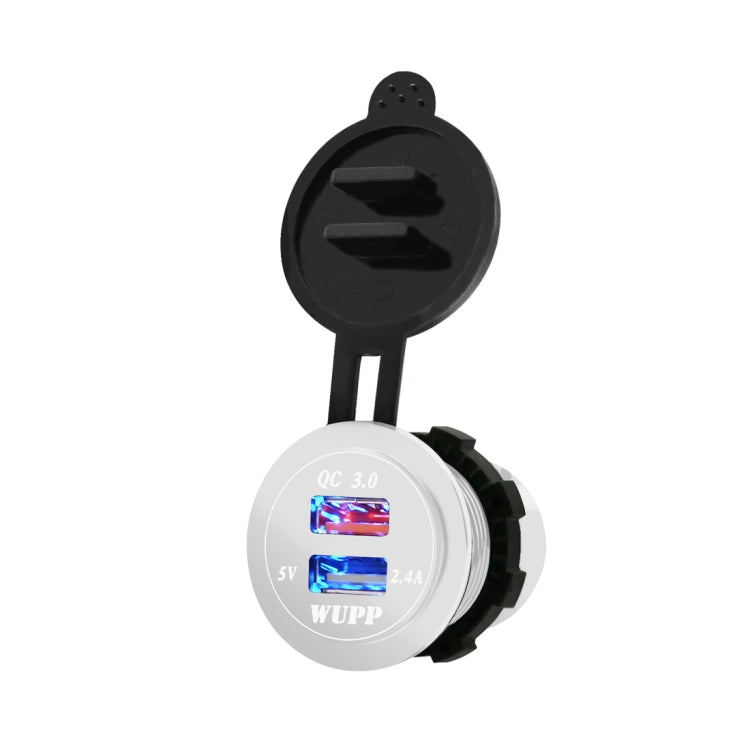 Universal Car QC3.0 Dual Port USB Charger Aluminum Alloy 2 Port USB Adapter 5V 2.4A IP66(Blue Light)