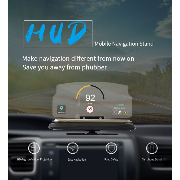Universal Mobile GPS Navigation Bracket HUD Head Up Display Car Mobile Phone Mount Stand(With 3M Adhesive Fixed Version), For iPhone, Samsung, LG, Nokia, HTC, Xiaomi, Sony, Huawei, and other Smartphones(Black)
