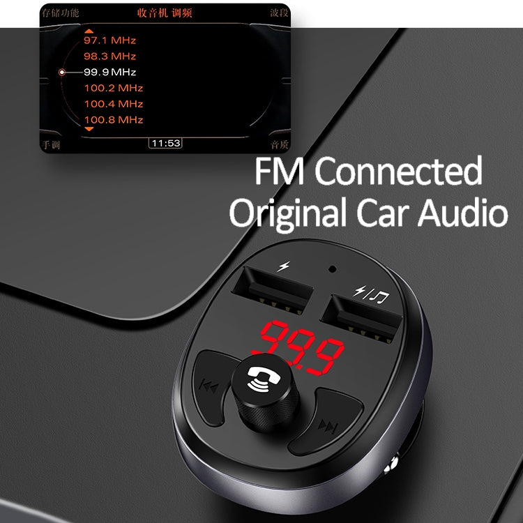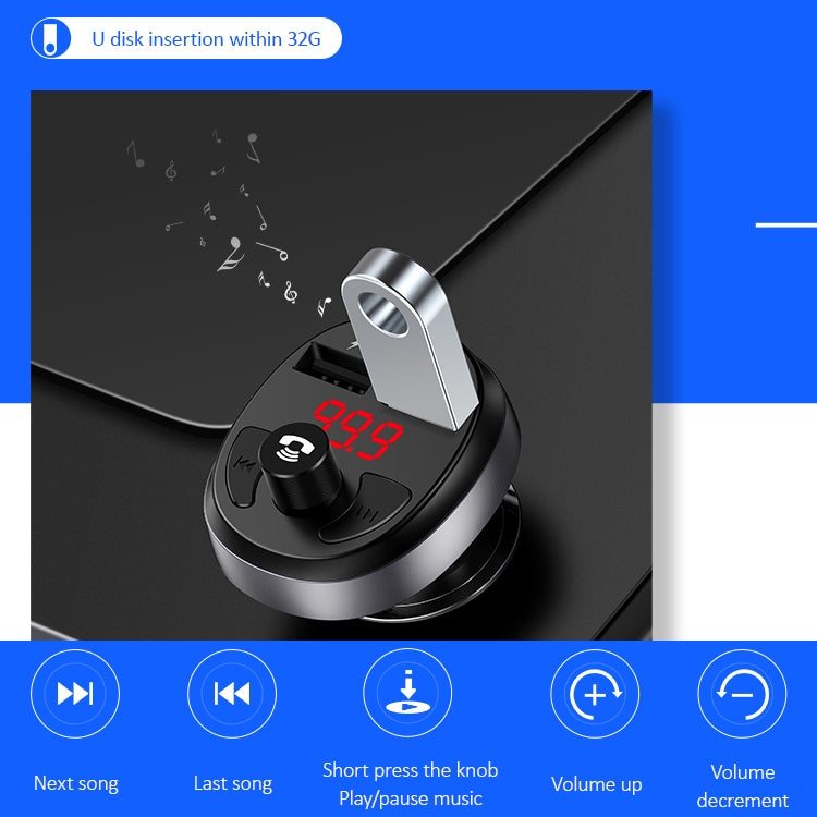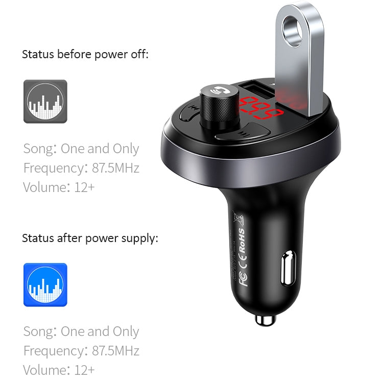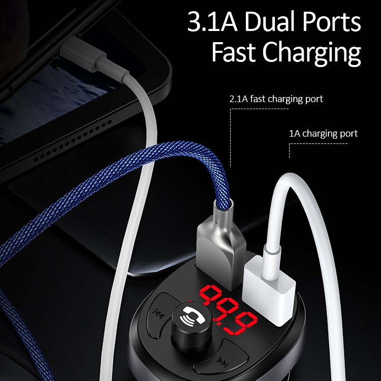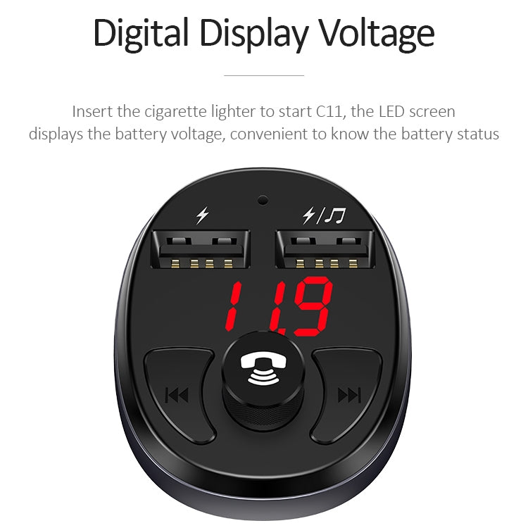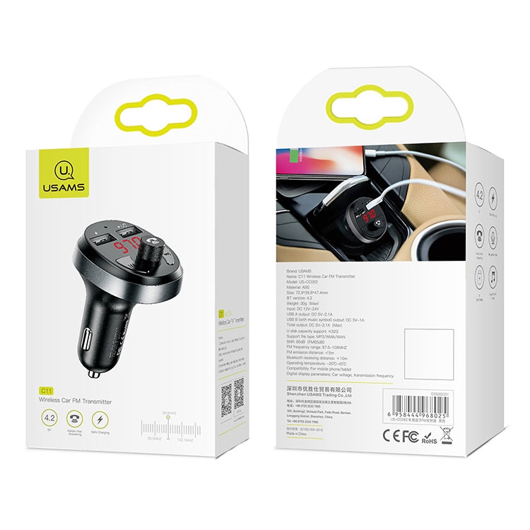 USAMS US-CC062 C11 Wireless Bluetooth4.2 Car FM Transmitter MP3 Music Player with Dual USB Ports (Black)