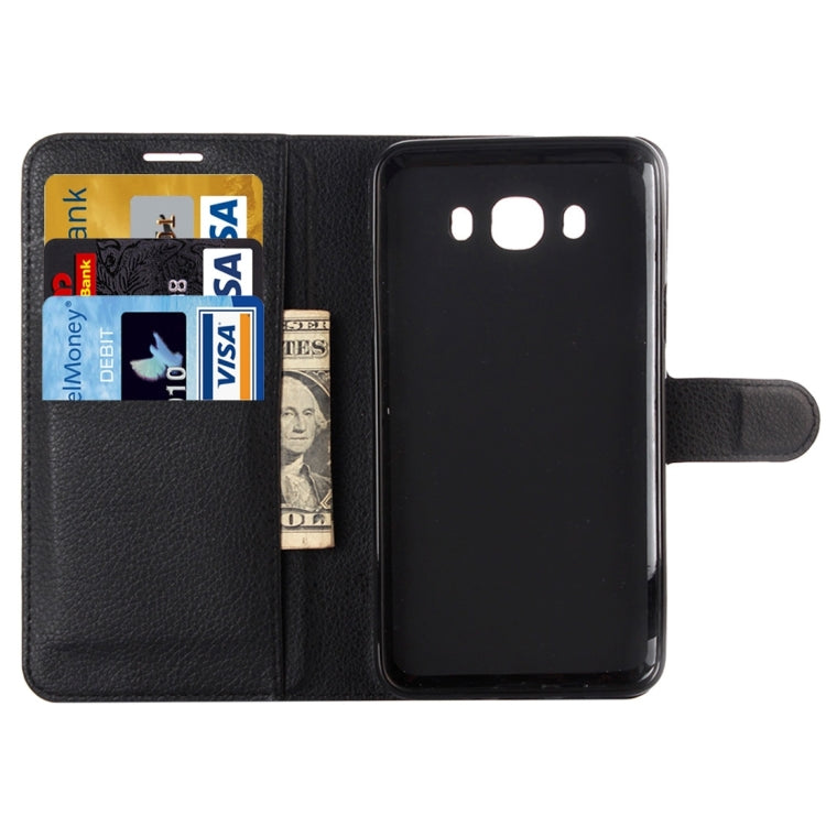 For Galaxy J5 (2016) / J510 Litchi Texture Horizontal Flip Leather Case with Holder & Card Slots & Wallet(Black)