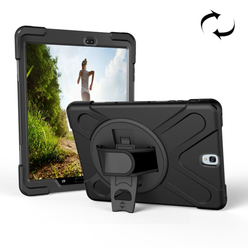 For Galaxy Tab S3 9.7 inch T820 360 Degree Rotation PC + Silicone Protective Case with Holder & Hand-strap (Black)