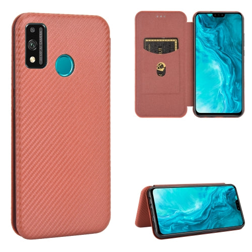 For Huawei Honor 9X Lite Carbon Fiber Texture Magnetic Horizontal Flip TPU + PC + PU Leather Case with Card Slot(Brown)