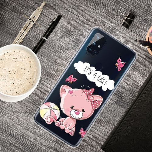 For OnePlus Nord N100 Shockproof Painted Transparent TPU Protective Case(Cute Cat)