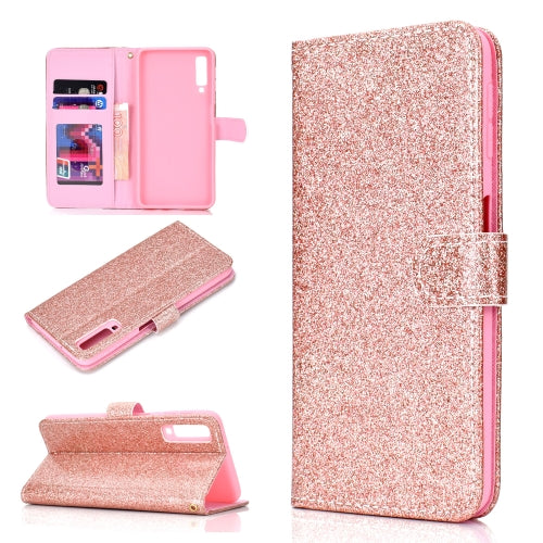 For Samsung Galaxy A7 (2018) Glitter Powder Horizontal Flip Leather Case with Card Slots & Holder & Photo Frame & Wallet(Rose Gold)