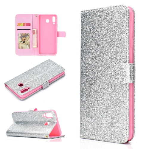 For Samsung Galaxy A9 Star Glitter Powder Horizontal Flip Leather Case with Card Slots & Holder & Photo Frame & Wallet(Silver)
