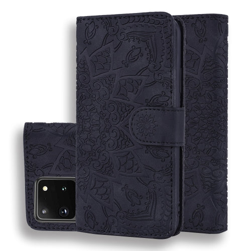 For Samsung Galaxy S20 Ultra Embossed Sunflower Pattern Horizontal Flip PU Leather Case with Holder & Card Slots & Wallet & Lanyard(Black)