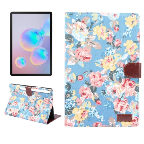 For Samsung Galaxy Tab S7 T870 Flower Cloth Texture PC Horizontal Flip Leather Protective Case , with Holder & Card Slots & Wallet & Photo Frame(Blue)