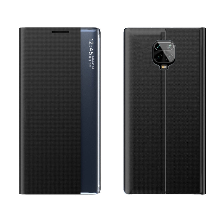 For Xiaomi Redmi Note 9S / Note9 Pro / Note 9 Pro Max Side Display Magnetic Horizontal Flip Plain Texture Cloth + PC Case with Holder & Sleep / Wake-up Function(Black)