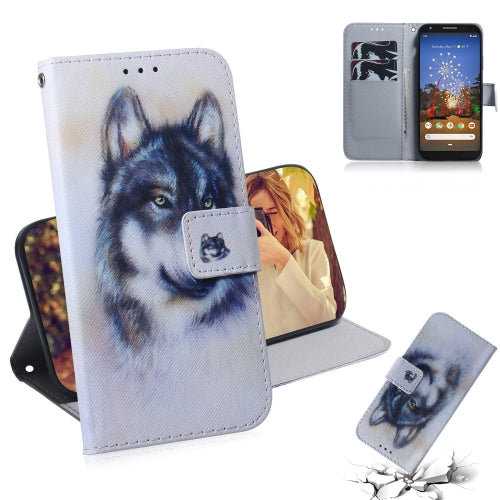 Painting Pattern Coloured Drawing Horizontal Flip Leather Case with Holder & Card Slots & Wallet for Google Pixel 3a(White Wolf)