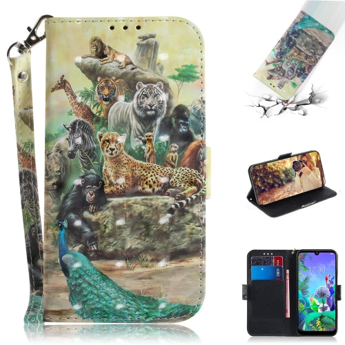 3D Painting Zoo Pattern Coloured Drawing Horizontal Flip Leather Case for LG Q60, with Holder & Card Slots & Wallet