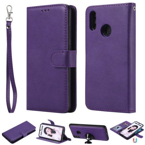 For Huawei Honor 10 Lite Solid Color Horizontal Flip Protective Case with Holder & Card Slots & Wallet & Photo Frame & Lanyard(Purple)
