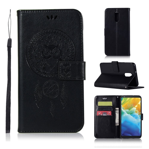 Wind Chime Owl Embossing Pattern Horizontal Flip Leather Case with Holder & Card Slots & Wallet For LG Q Stylo 5(Black)