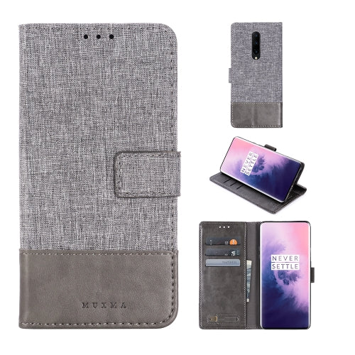 For OnePlus 7 Pro MUXMA MX102 Horizontal Flip Canvas Leather Case with Stand & Card Slot & Wallet Function(Grey)