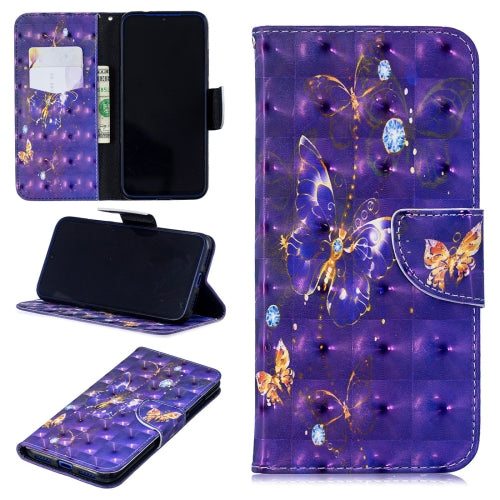 3D Colored Drawing Purple Butterfly Pattern Horizontal Flip Leather Case for Xiaomi Redmi Note 7 / Redmi Note 7 Pro, with Holder & Card Slots & Wallet