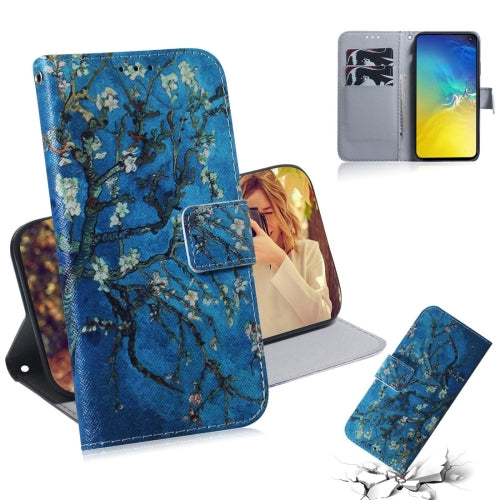 Apricot Flower Pattern Coloured Drawing Horizontal Flip Leather Case for Galaxy S10 E, with Holder & Card Slots & Wallet