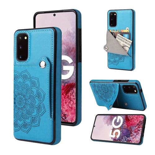 For Samsung Galaxy S20 Embossed Pattern PU + TPU Protective Case with Holder & Wallet & Card Slots(Blue)