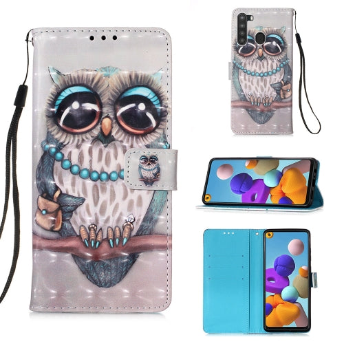 For Samsung Galaxy A21 (EU Version) 3D Painting Horizontal Flip Leather Case with Holder & Card Slot & Wallet & Lanyard(Owl)