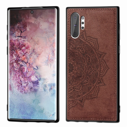 Embossed Mandala Pattern Magnetic PC + TPU + Fabric Shockproof Case for Galaxy Note10+, with Lanyard(Brown)
