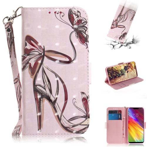 3D Colored Drawing Butterfly High-heeled Shoes Pattern Horizontal Flip Leather Case for LG Q Stylo 5, with Holder & Card Slots & Wallet