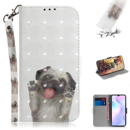 For Xiaomi Redmi 9A 3D Colored Drawing Horizontal Flip Leather Case with Holder & Card Slots & Wallet & Lanyard(Pug)