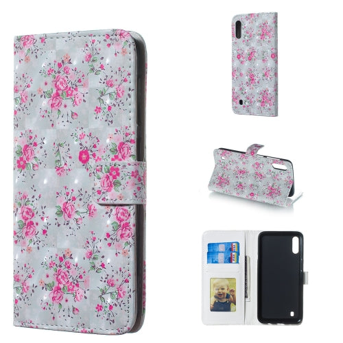 Rose Pattern 3D Horizontal Flip Leather Case for Galaxy M10, with Holder & Card Slots & Photo Frame & Wallet