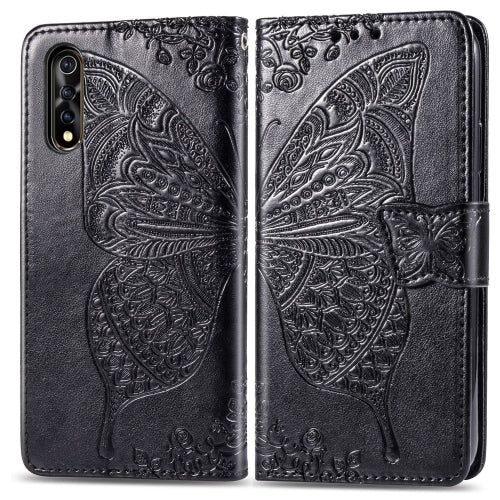 For Vivo Y7s / S1 Butterfly Love Flowers Embossing Horizontal Flip Leather Case with Holder & Card Slots & Wallet & Lanyard(Black)