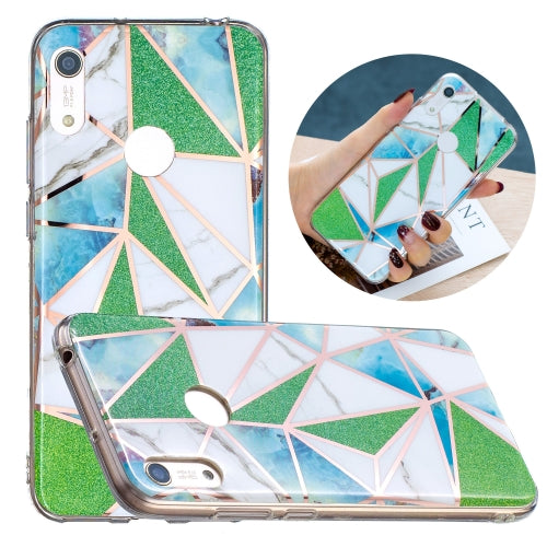 For Huawei Y6 (2019) Flat Plating Splicing Gilding Protective Case(Green Triangle Body Color Matching)