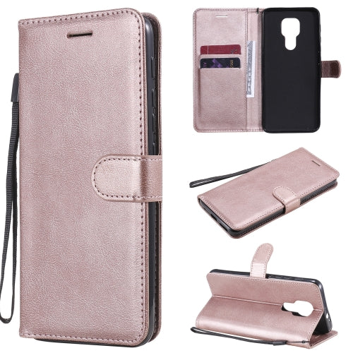 For Motorola Moto G9 Play Solid Color Horizontal Flip Protective Leather Case with Holder & Card Slots & Wallet & Photo Frame & Lanyard(Rose Gold)