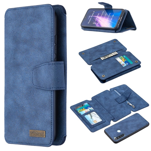 For Xiaomi Redmi Note 8 Detachable Frosted Magnetic Horizontal Flip Leather Case with Card Slots & Holder & Zipper Wallet & Photo Frame(Blue)