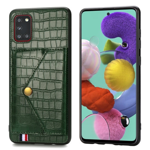 For Samsung Galaxy A31 Crocodile Pattern Envelope Card Package Phone Case With Magnet And Bracket Function(Green)