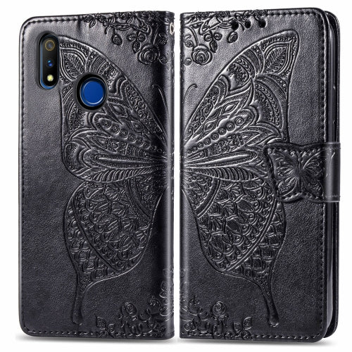 For OPPO Realme 3 Pro Butterfly Love Flower Embossed Horizontal Flip Leather Case with Bracket / Card Slot / Wallet / Lanyard(Black)