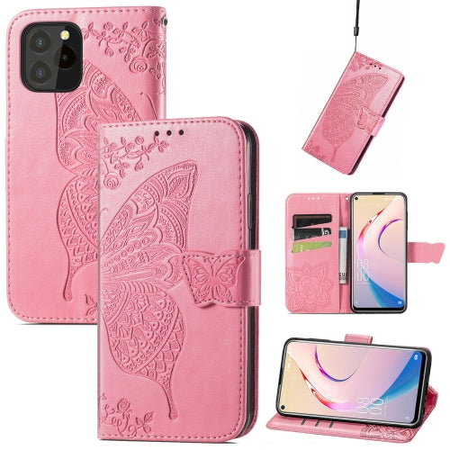 For Oukitel C21 Pro Butterfly Love Flower Embossed Horizontal Flip Leather Case with Holder & Card Slots & Wallet & Lanyard(Pink)