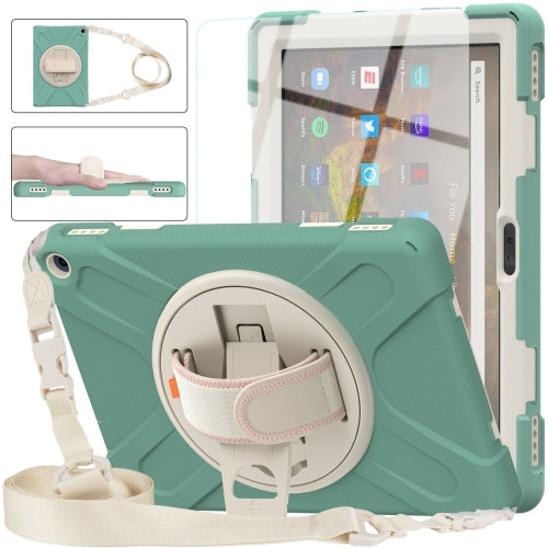 For Amazon Kindle Fire HD 10 2021 Silicone + PC Protective Case with Holder & Shoulder Strap(Emerald Green)