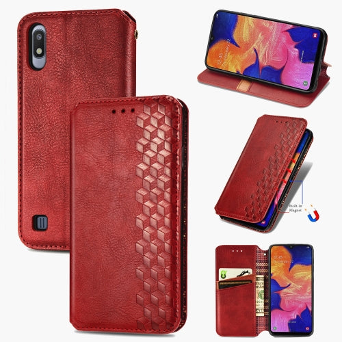 For Samsung Galaxy A10 Cubic Grid Pressed Horizontal Flip Magnetic Leather Case with Holder & Card Slots & Wallet(Red)