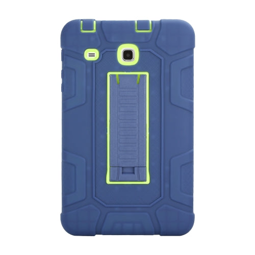 For Samsung Galaxy Tab E 8.0 T377 C5 Four Corners Shockproof Silicone + PC Protective Case with Holder(Navy Blue + Lemon Yellow)