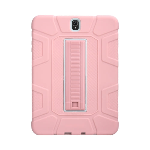 For Samsung Galaxy Tab S3 9.7 T820 C5 Four Corners Shockproof Silicone + PC Protective Case with Holder(Rose Gold + Grey)
