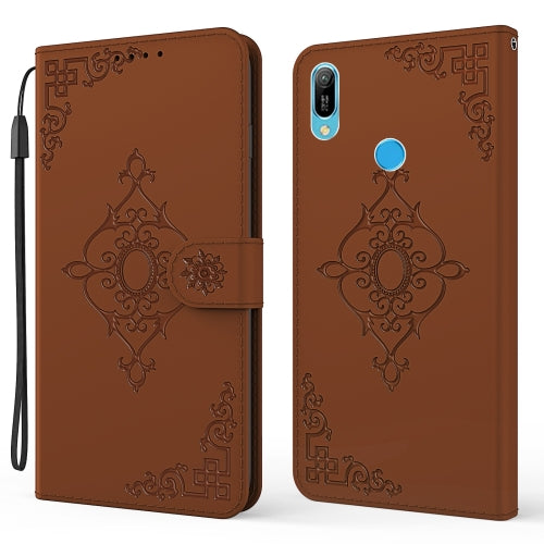 For Huawei Y6 (2019) Embossed Fortune Flower Pattern Horizontal Flip Leather Case with Holder & Card Slot & Wallet & Lanyard(Brown)