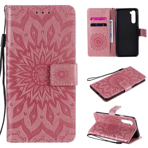 For OnePlus Nord Pressed Printing Sunflower Pattern Horizontal Flip PU Leather Case with Holder & Card Slots & Wallet & Lanyard(Pink)