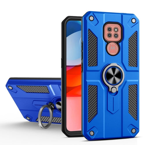 For Motorola Moto G9 Play Carbon Fiber Pattern PC + TPU Protective Case with Ring Holder(Dark Blue)