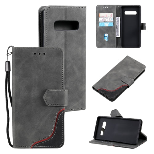 For Samsung Galaxy S10e Three-color Stitching Calf Texture Horizontal Flip Leather Case with Holder & Card Slots & Wallet(Grey)