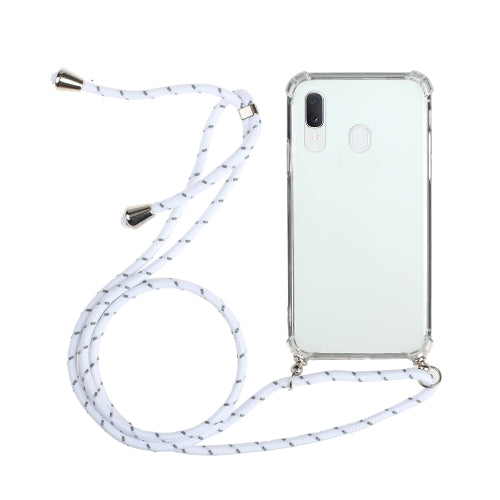 For Samsung Galaxy A20e Four-Corner Anti-Fall Transparent TPU Protective Case with Lanyard(White)